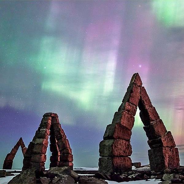 光球凝聚在屋頂上,彩虹進到神殿內。
